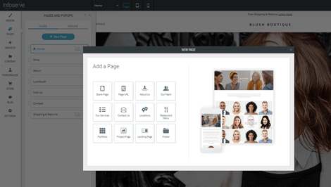 Once you have clicked on the 'new page' button the below pop up will appear giving you the different page types, choose an option that suits your needs the best.