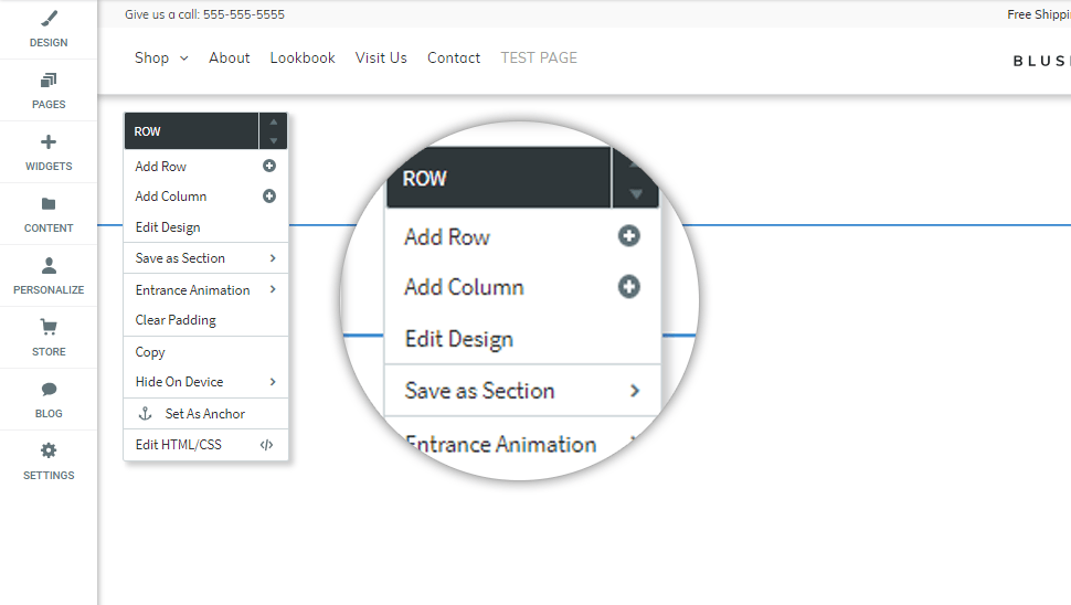 On the left hand side of all sections you can find a blue tab when hovered over, labelled 'row' you can right click on the tab to open a selection of options.
