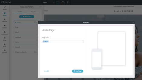 In order to add a new page you must go the pages tab on the left hand side of the website editor, this will open a second window with a list of your site pages and a button labelled '+ new page', click this to open your page options.