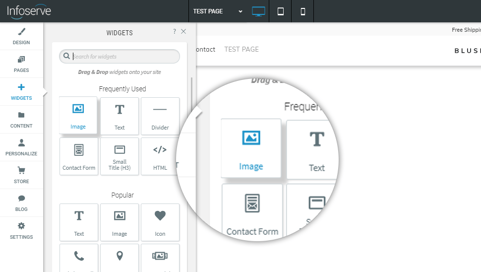There are two ways of adding images to your website, you can either add images into a row or column background which allows you to add text on top of the image, or you can drag an image widget into a row or column.